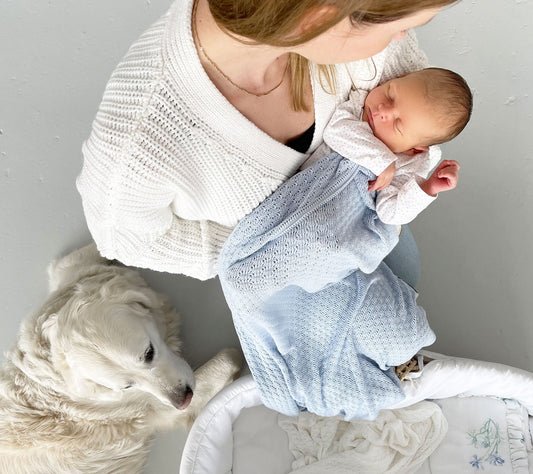 Light knitted bamboo swaddle blanket - Blue